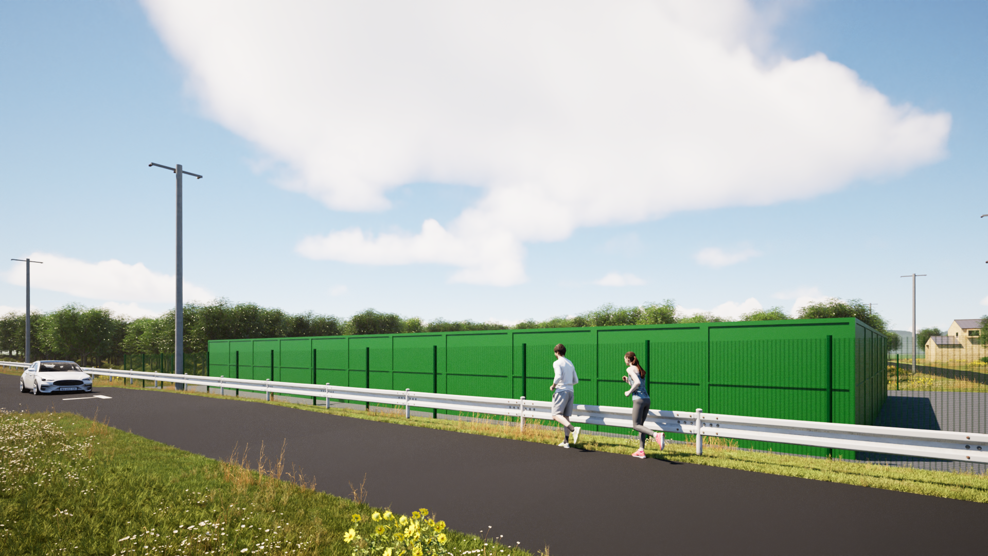 太陽光発電所やBESS(蓄電所)は、完成後の“見え方”が地域の受け止め方に影響します。私たちは、設備だけでなく建物・樹木など周辺環境も含めた3Dモデルで完成イメージを再現し、建設前後の比較が一目で分かる形に整理します。